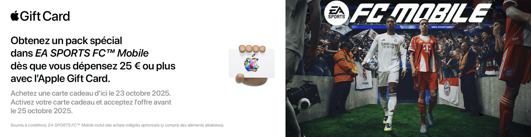 - Utilisez votre carte cadeau avant le 25/10/2025 pour bénéficier de cette offre.